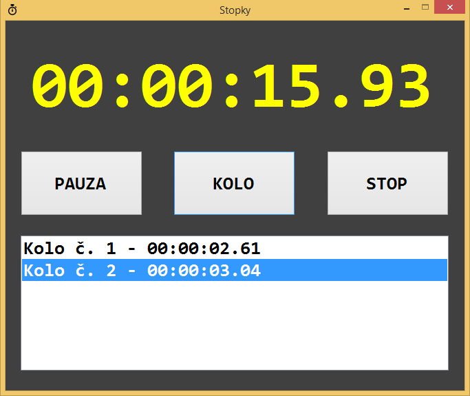 Pomocou WinForms naprogramujte aplikáciu stopky podobnú tej na obrázku nižšie: